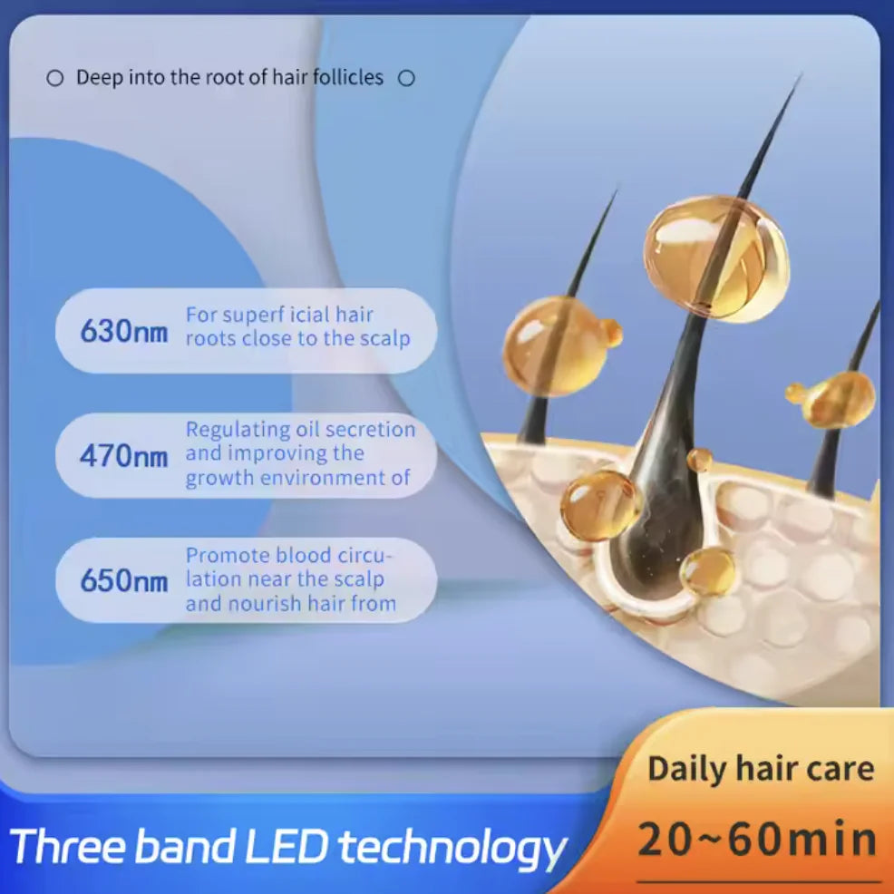 Revitalize your hair and combat hair loss with our innovative Hair Growth Cap. This advanced device combines the power of vibration massage, gentle heating, and red/blue light therapy to stimulate hair follicles and promote healthy hair growth.